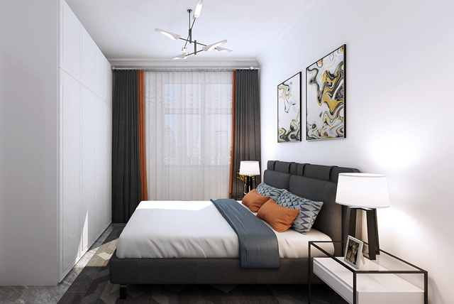 客廳圍繞金色茶幾和金色背景裝修奠定復(fù)古優(yōu)雅的基調(diào),從窗簾蔓延到凳腳,燈具,配合簡約流程的線條,讓空間富有靈動的魅力。餐廳足夠簡約,顏色和客廳相應(yīng)加強了空間雕塑感,墻上的裝飾畫,為空間增添了一絲復(fù)古的感覺。華貴的金黃色星星點點地活躍在空間中。伴著灰色進入臥室,色彩的分割讓空間有了明確的功能分區(qū)。
