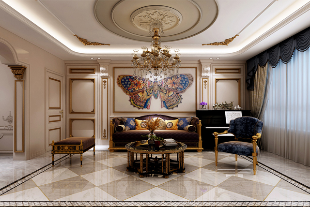 在布局上,配色以白、金的木色為主調(diào)。結(jié)構(gòu)粗厚的沙發(fā),圓形的鼓型茶幾,搭配搶眼的古典細(xì)節(jié)鑲飾,呈現(xiàn)皇室貴族般的品味。風(fēng)格則偏于莊重大方,整個(gè)建筑多采用對(duì)稱(chēng)造型,恢宏的氣勢(shì),豪華舒適的居住空間,屋頂多采用孟莎式,坡度有轉(zhuǎn)折,上部平緩,下部陡直,呈現(xiàn)出浪漫典雅風(fēng)格。,點(diǎn)綴在自然中,崇尚沖突之美。